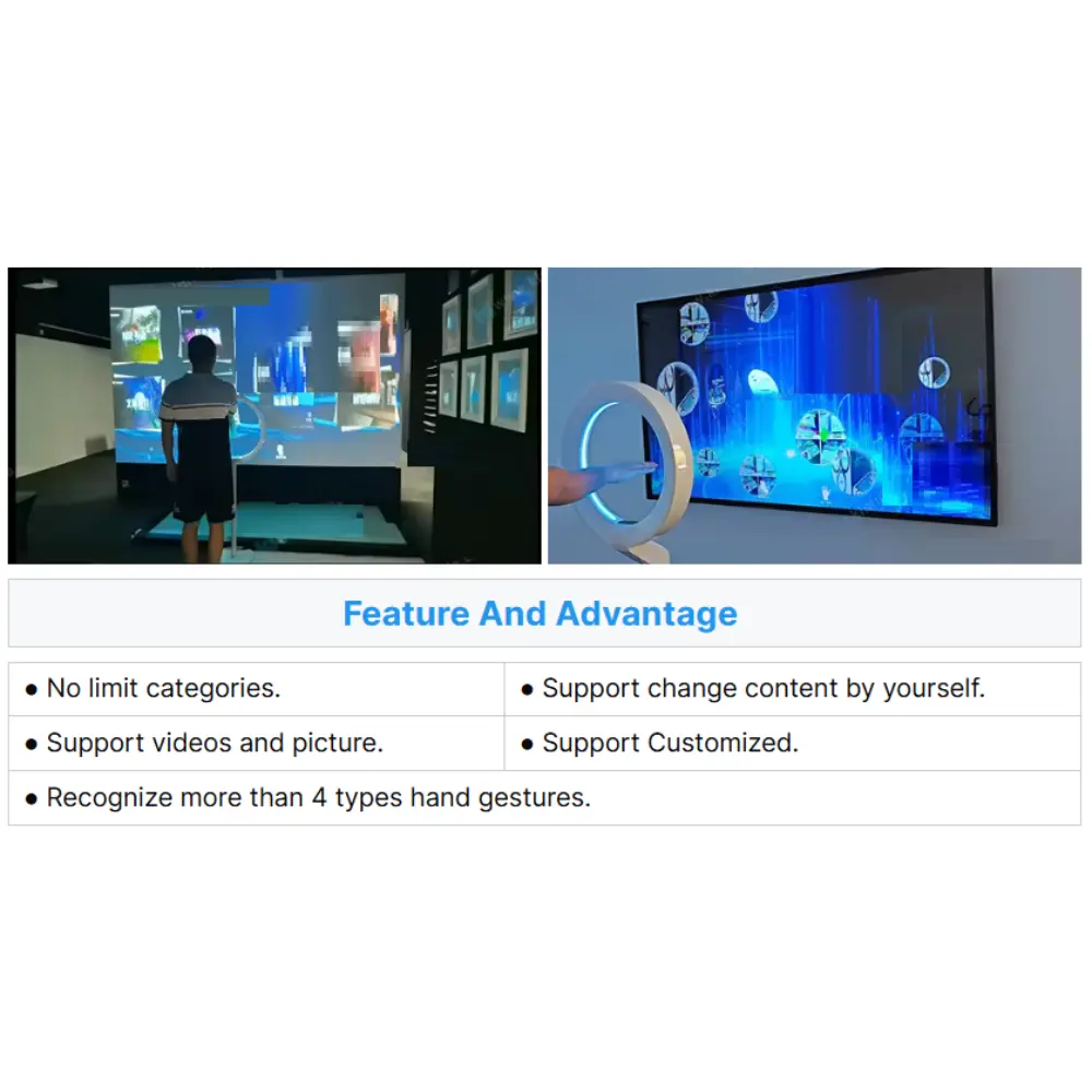 The 3D Interactive Gesture Recognition System for Exhibitions and Museums is an advanced interactive display designed for immersive user experiences in museums, exhibitions, and commercial spaces. This system uses state-of-the-art Leap Motion camera-based technology to precisely recognise hand gestures and movements, enabling users to manipulate digital material without using their hands. This innovative solution enhances interactivity, making educational and promotional experiences more engaging. The system supports high-resolution displays such as LED screens, projectors, and LCD panels, ensuring smooth and clear visual output up to 1920×1080 (HD). Built with stainless steel, it is durable and designed to withstand extensive public use. Additionally, it functions across a wide temperature range (-20°C to 50°C), making it adaptable for various environments. Commonly used in business settings, educational institutions, entertainment venues, and retail spaces, this AI-powered system revolutionizes interactive storytelling, presentations, and customer engagement.