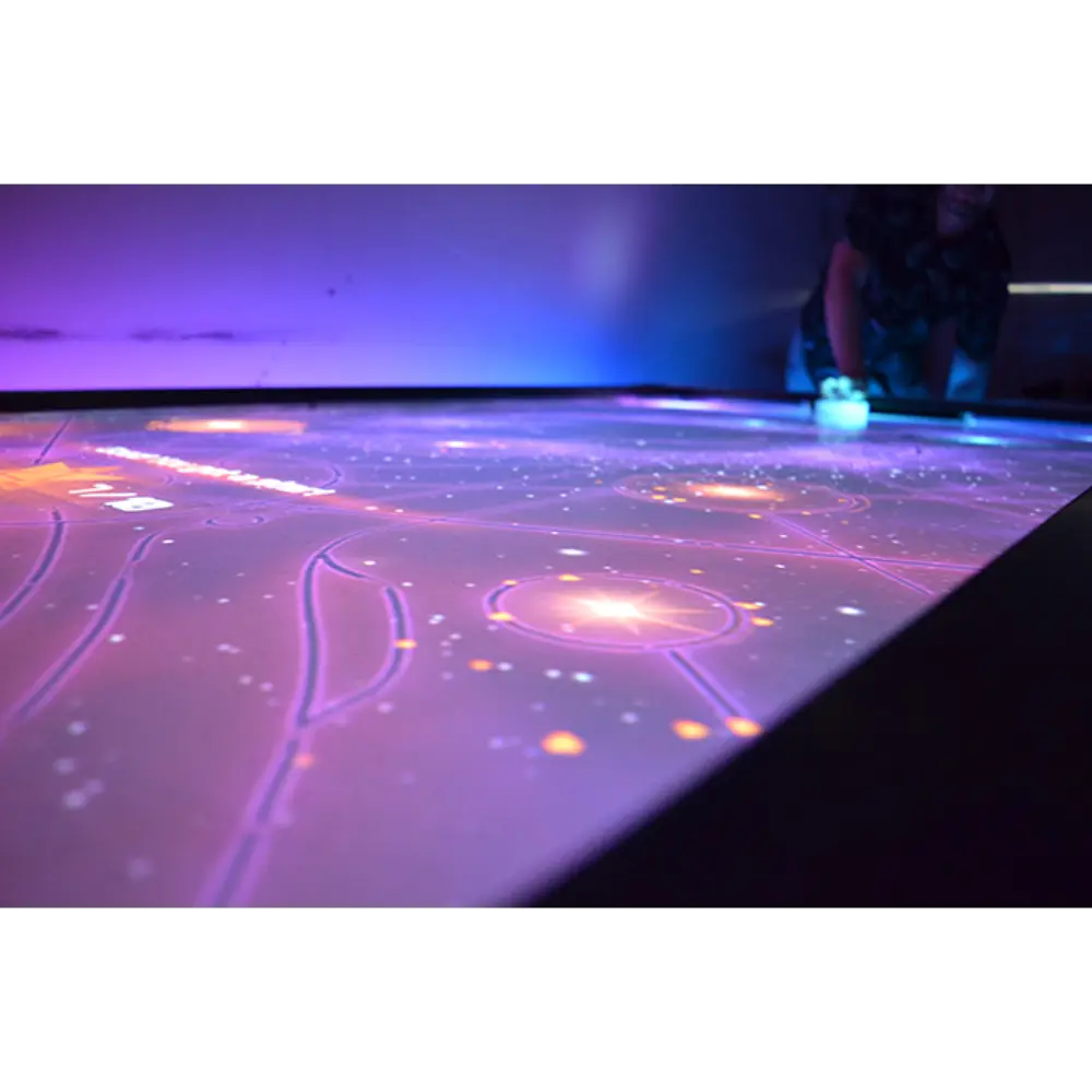 • Interaction: Real puck and mallets with digital effects projected onto the table