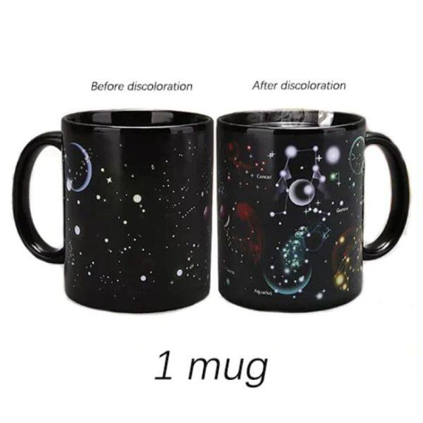 Impress your friends, your kids and family with this innovative product. Serving coffee, tea or milk will never be the same again! You only have to put some hot liquid inside the mug and then a starry solar system arises. It is easy to clean, heat-resistant, handmade from an exquisite ceramic material, and environmentally friendly. Its full capacity reaches 330 ml and it comes in various motives, such as the Solar System pattern, the Constellation one, and the Earth depiction pattern. The outer surface of the cup has a thermo-sensitive color changing material, that enables –gradually- the fully depiction of each pattern. Just cool the mug and the motive fades away! Take the chance and make a great present to your kids, intriguing their curiosity about the universe. Make the difference among your friends and/or colleagues. Choose now, from NewTechStore, the pattern that suits you best. Package includes 1 mug.