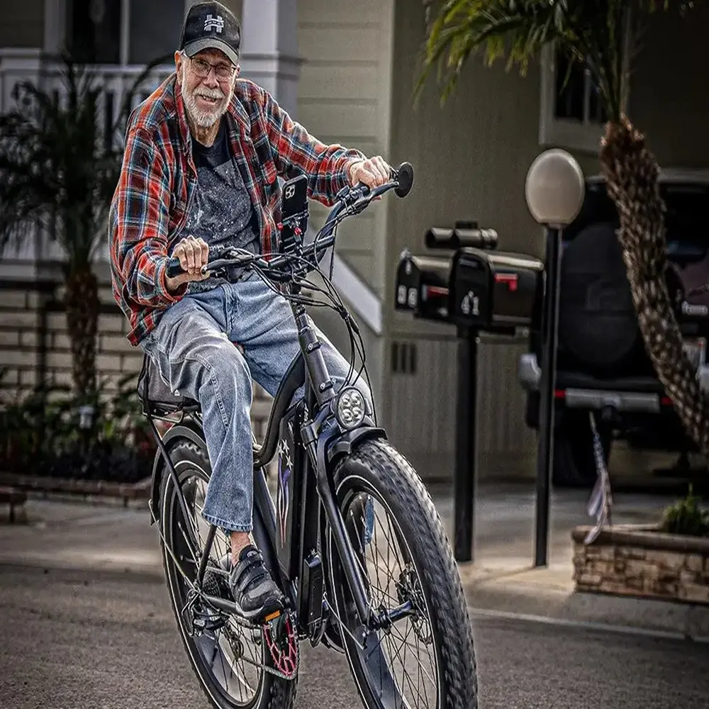 The Himiway D3 Cruiser Electric Bike is a rugged and versatile long-range, fat-tire electric bike designed for adventure seekers and everyday riders alike. At the heart of this beast is a powerful 750W brushless geared hub motor, capable of delivering up to 85Nm of torque, making it ideal for conquering steep hills, sandy beaches, snowy paths, and rough trails. Its 48V 17.5Ah Samsung/LG lithium-ion battery offers an impressive range of up to 96.5 km in pedal-assist mode and around 56 km in pure electric throttle mode. The D3 Cruiser exceeds industry norms by supporting a payload of up to 159 kg thanks to its 6061-aluminum frame. The bike rolls on 26×4.0″ Kenda fat tires, ensuring stability and comfort across diverse terrains. Riders benefit from Shimano 7-speed gearing, a backlit LCD, and five levels of pedal assist, allowing for customizable riding experiences. Whether you’re commuting, trailblazing, or cruising through the countryside, the D3 Cruiser blends power, durability, and range into one compelling package.
