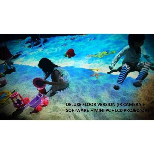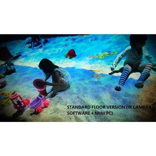 A new technology that will impress your kids and will give them unforgettable moments of happiness. The Interactive Floor and Wall System is a new way of entertainment through which your kids can react in a unique way in real time with their technology environment.You can imagine your kids walking into a fish restaurant, over a swimming pool filled with shimmering water, goldfish swimming through the water and over the restaurant´s logo. Then, as you walk you can see ripples in the water, hear the sounds of your footsteps and see the fish darting away from your feet. This is all possible at the same time with our Interactive Floor System. Moreover the parents can participate by dancing on a dance floor that is affected by the dancer´s movements or an interactive game that engrosses the users attention. Every effect of the interactive floor and wall projection can be configured and it is extremely easy to use and create your own effects and games. You can create an unlimited number of unique effects as well as having an unlimited amount of different advertisers on one floor. All you need to complete an interactive projection system is a PC and projector. We also highly recommend a light coloured floor (ideally white) for maximum impact and it is imperative that existing ambient light is controlled so as not to detract from the overall projection.