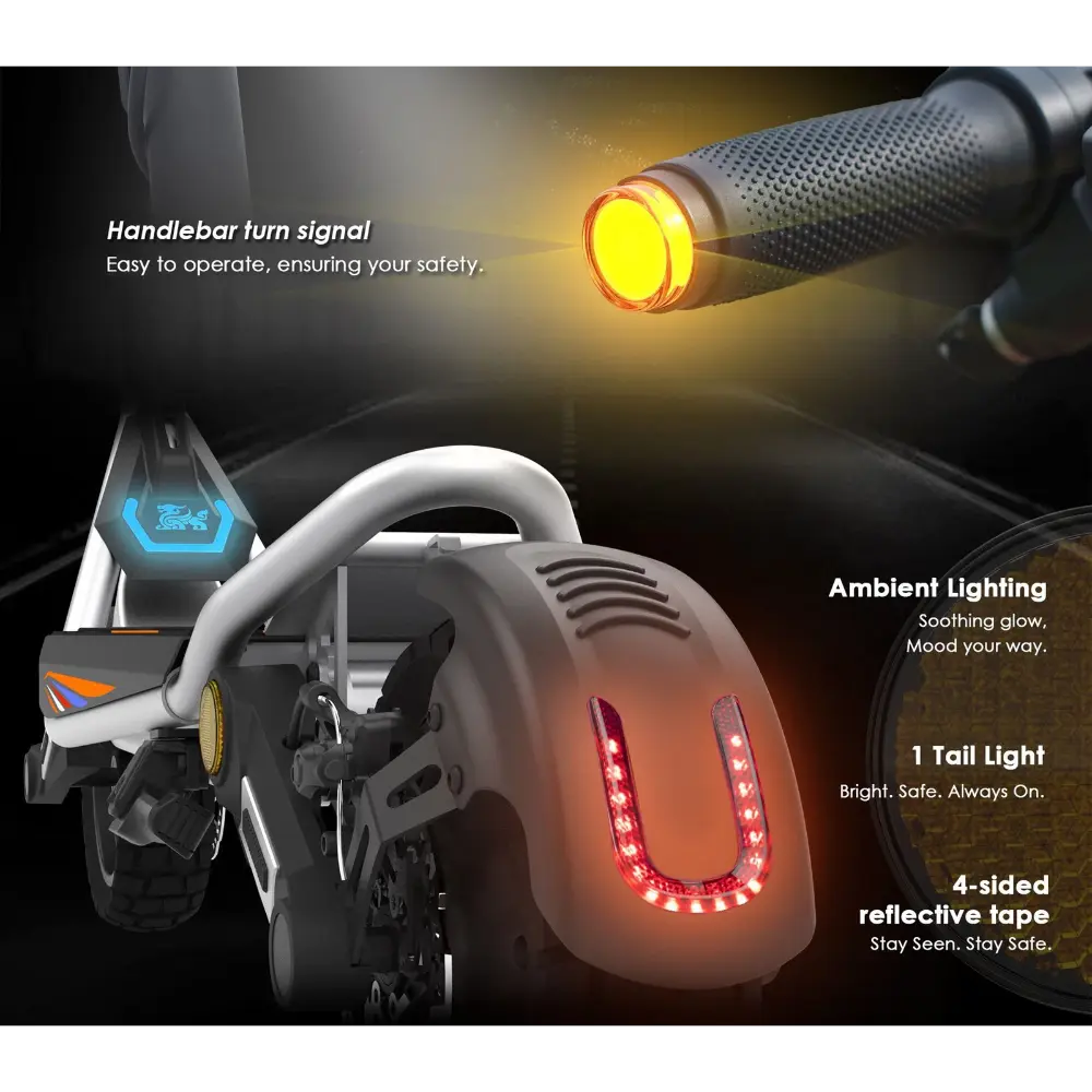 • Lighting: Ambient side decals, front light, and reflectors for night visibility