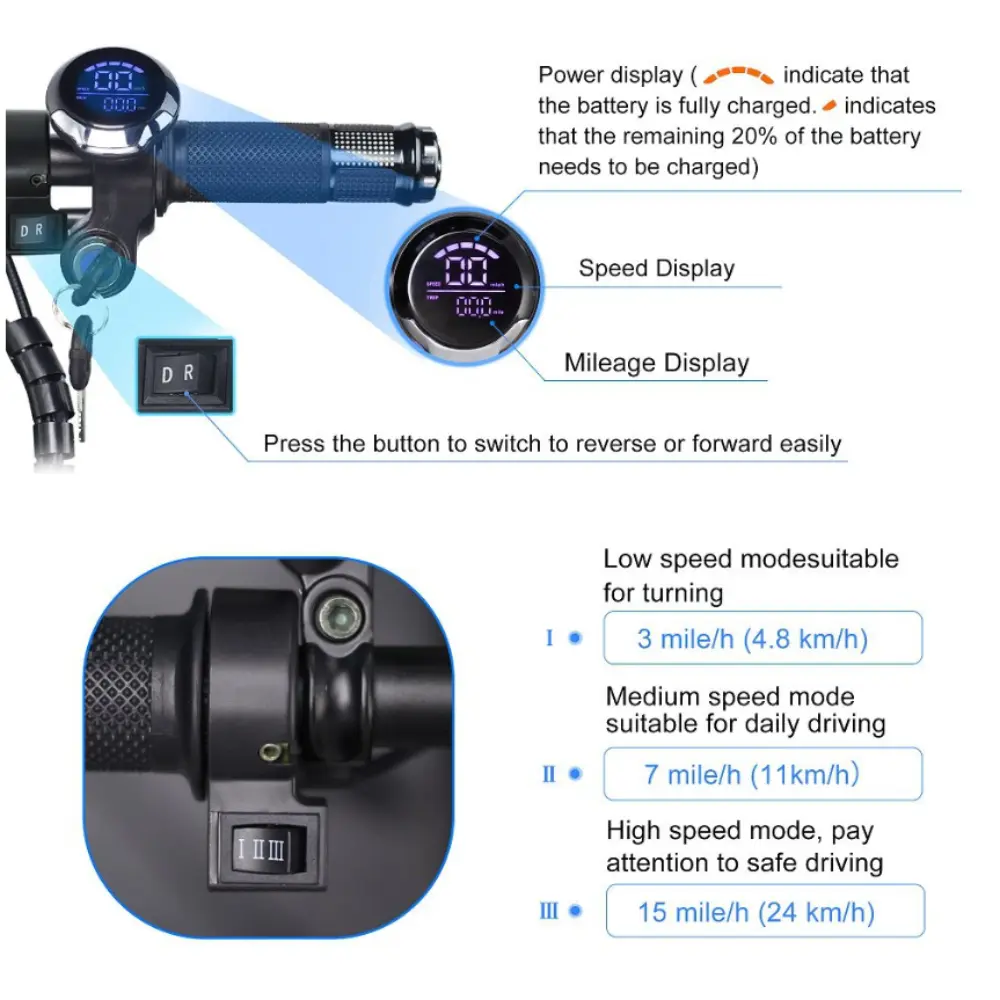 - Key Switch: Yes – for safety and theft deterrence
