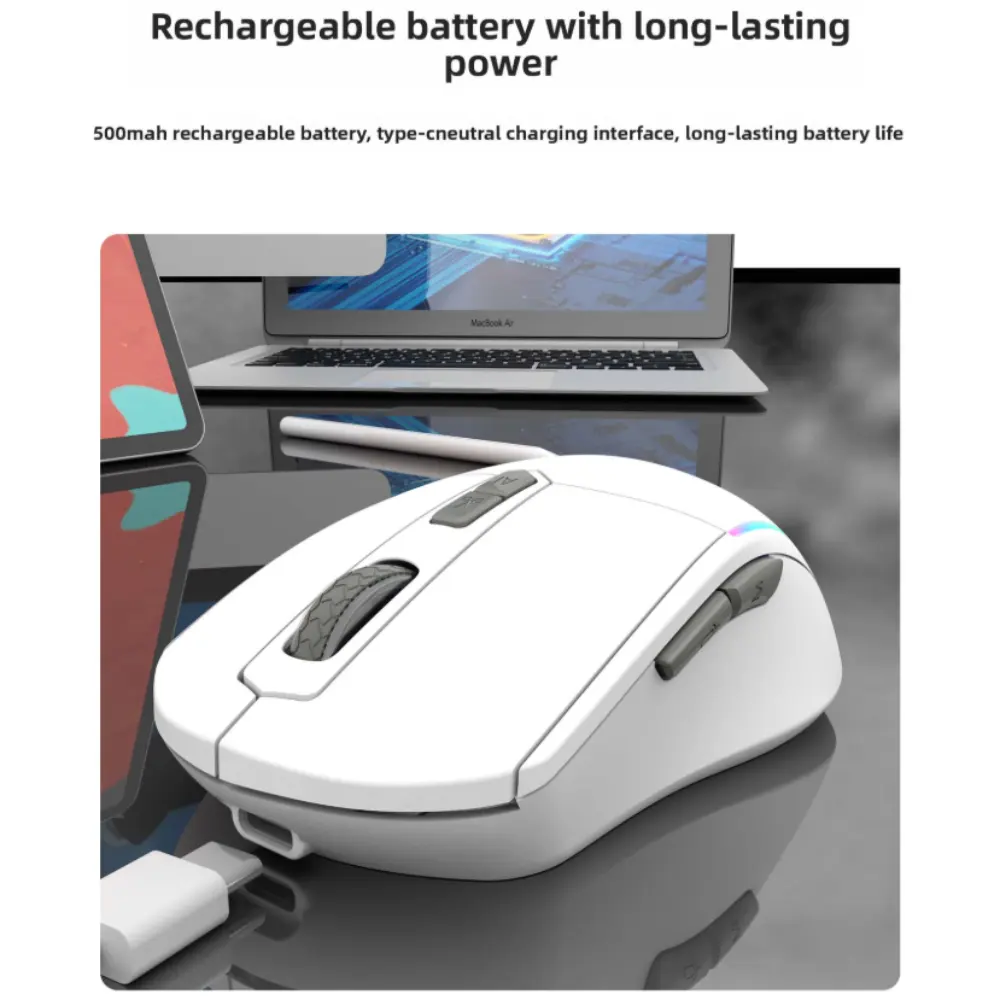 - Design: Ergonomic and lightweight, silent click buttons, LED indicator for mode switching
